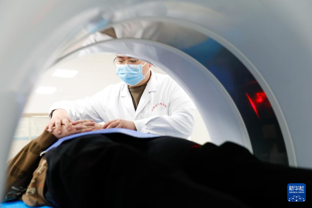 12月30日,在河南焦作市武陟县人民医院,医务人员为患者检查。