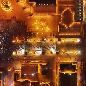 当日,各地张灯结彩,在璀璨光影中迎接新年到来。