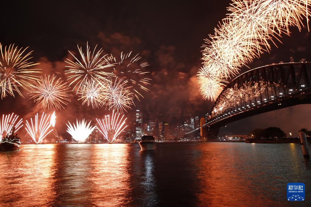 2024年1月1日,澳大利亚悉尼燃放烟花迎接新年。