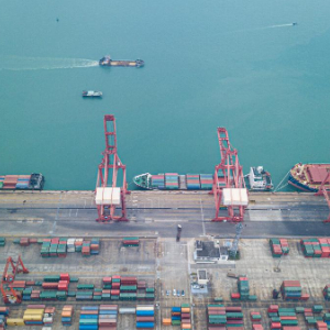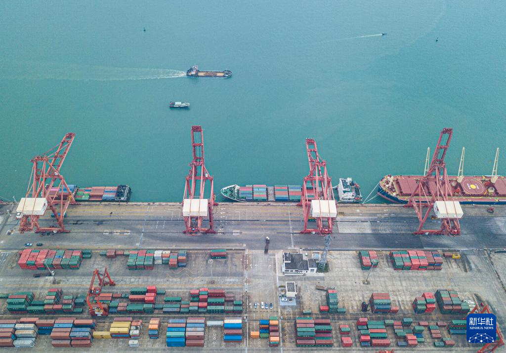 12月30日在海南自贸港重点园区——洋浦经济开发区拍摄的洋浦港及其所处的洋浦湾海域(无人机照片)。