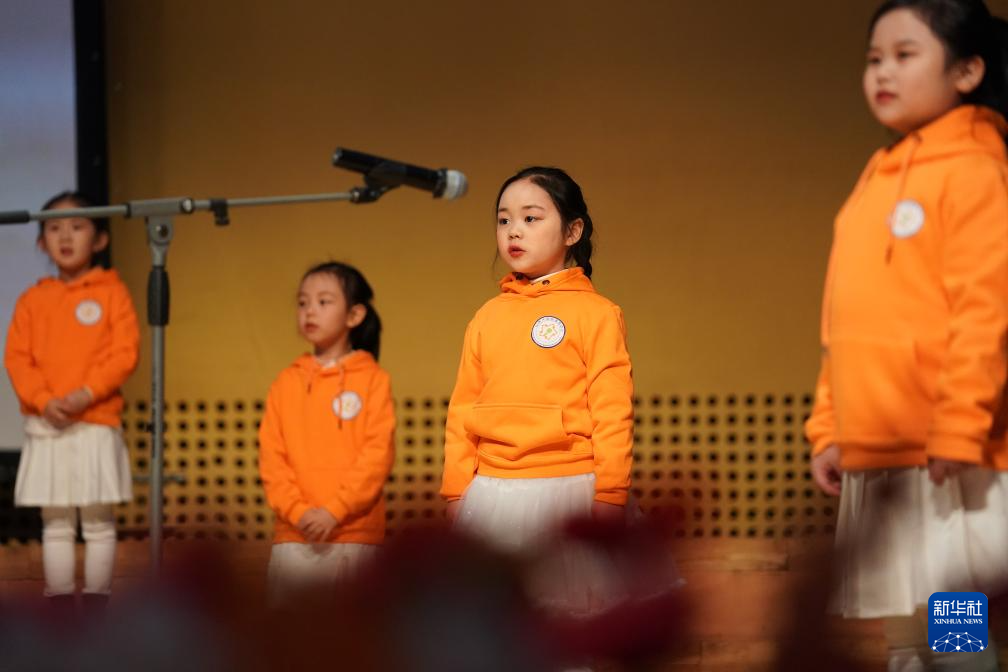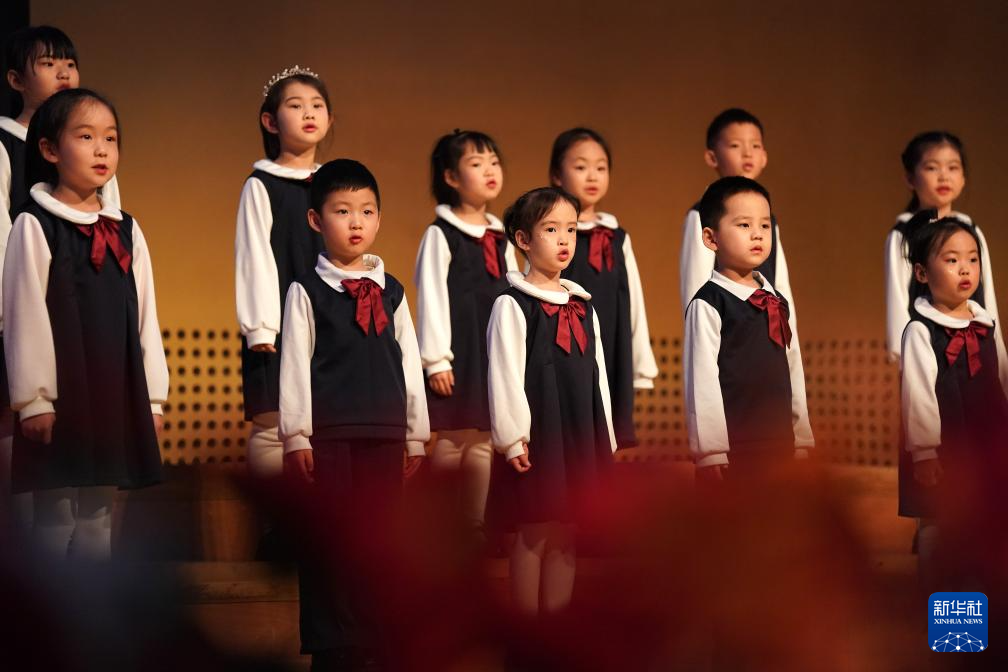 1月1日,山西大剧院星光童声合唱九团、十团的小演员们在表演童声合唱《古朗月行》。 当日,山西大剧院美育中心文艺汇演在山西大剧院音乐厅举行,合唱团、舞蹈团、音乐剧团等艺术团的孩子们同台演出。