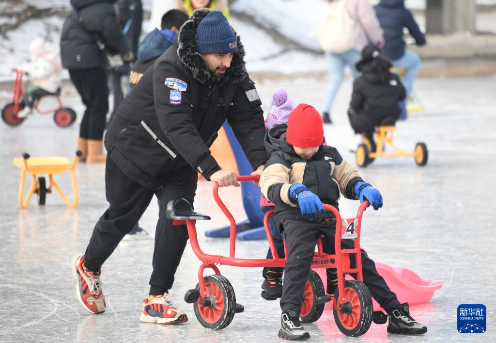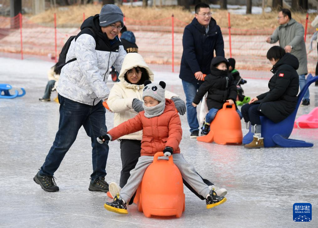 1月1日,游客在北京世界公园第三届北奥探梦趣“雪”“冰”纷嘉年华体验“冰车”。