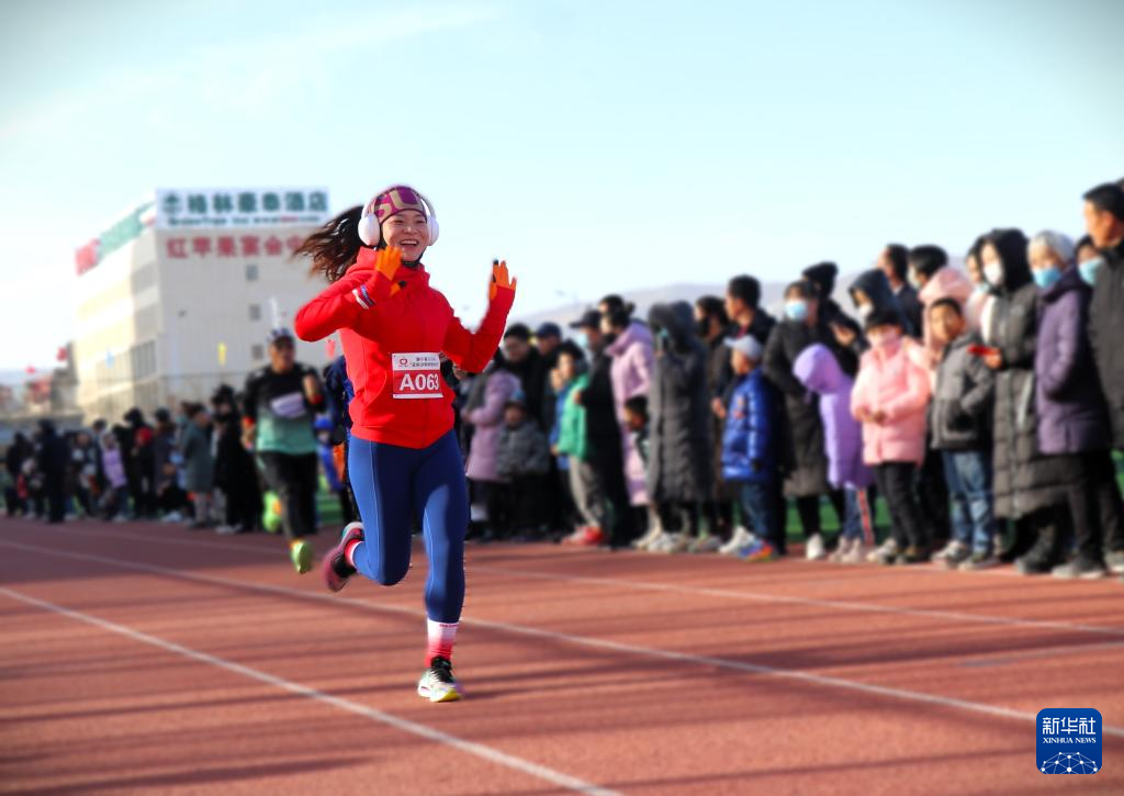 1月1日,在甘肃省平凉市静宁县举行的新年健身跑活动中,参赛者跑向终点。