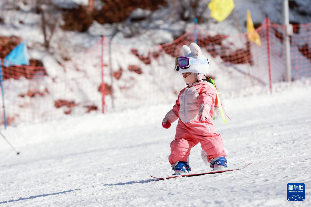 1月1日,小朋友在河北省武安市七步沟滑雪场滑雪。