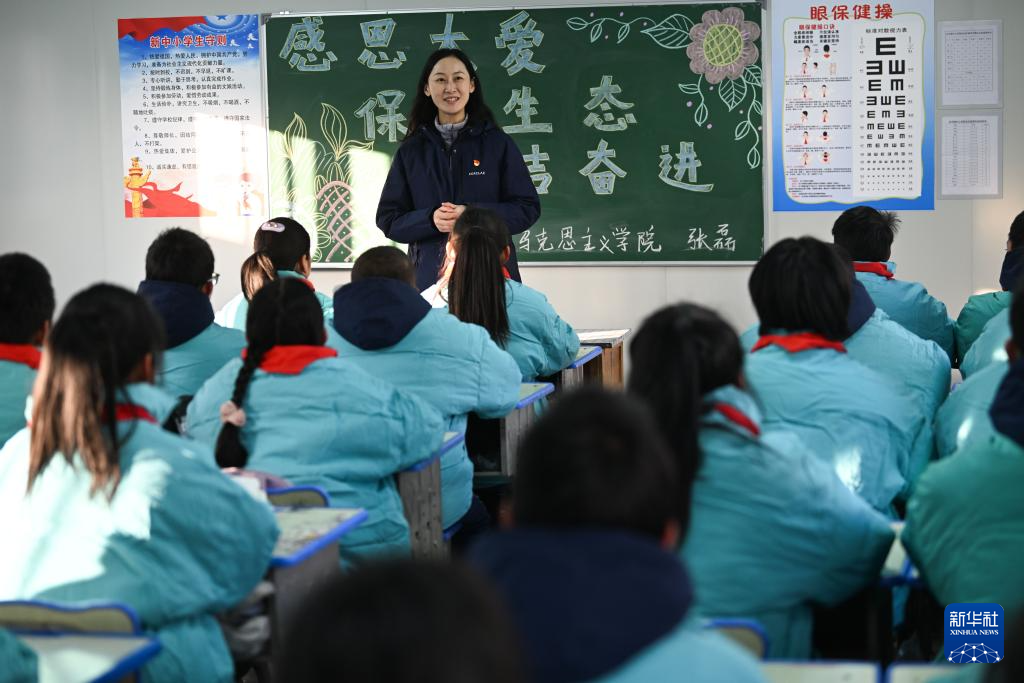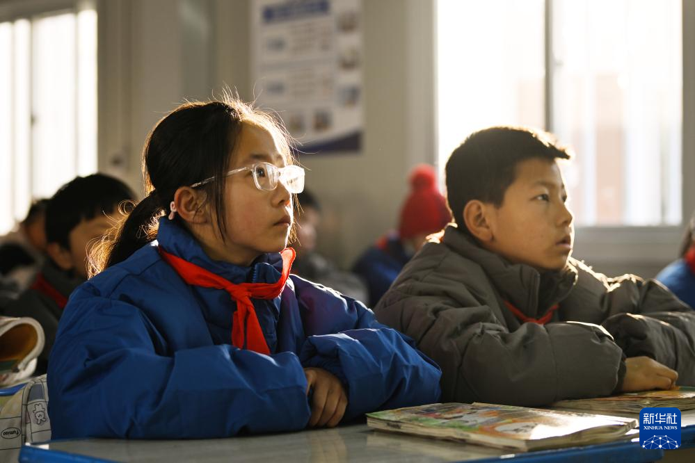 1月2日,在青海省海东市民和回族土族自治县官亭镇中心学校,学生上思政课。