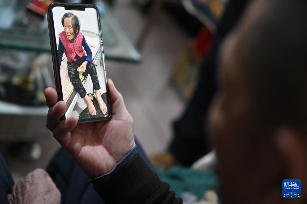 2023年12月31日,在江苏省常州市溧阳市埭头镇田螺圩村,史八妹端详李永。