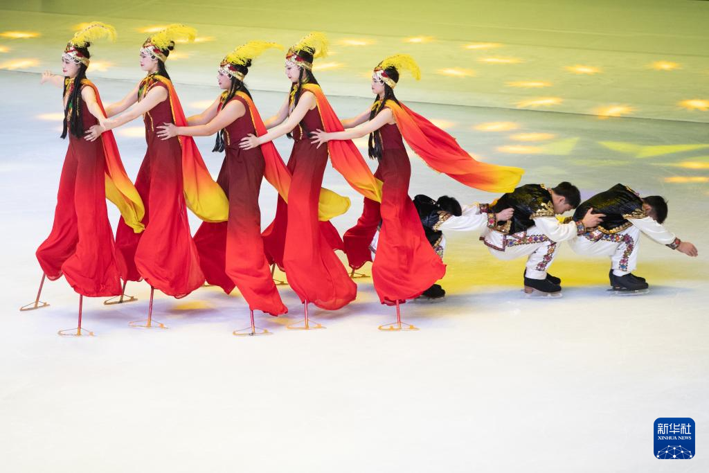 演员在哈尔滨冰雪大世界表演“冰秀”(2023年12月20日摄)。