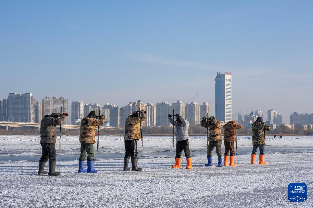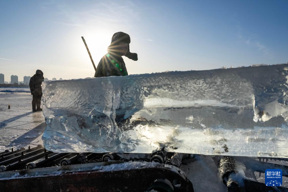 凛冬至,蜿蜒流淌的松花江慢慢放缓奔流的脚步,广阔的江面逐渐凝结出宽厚剔透的冰层。当冰层“身子骨”够厚,哈尔滨迎来采冰季,冰雪季大幕开启。