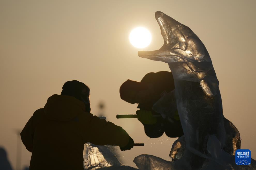 割冰、运冰、砌冰、雕冰……一块块冰经过“升华”之旅,化身成玲珑冰雕,最终融入冰雪大世界、冰灯艺术游园会等各处冰建景观之中。