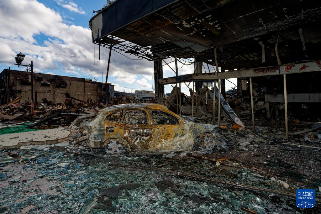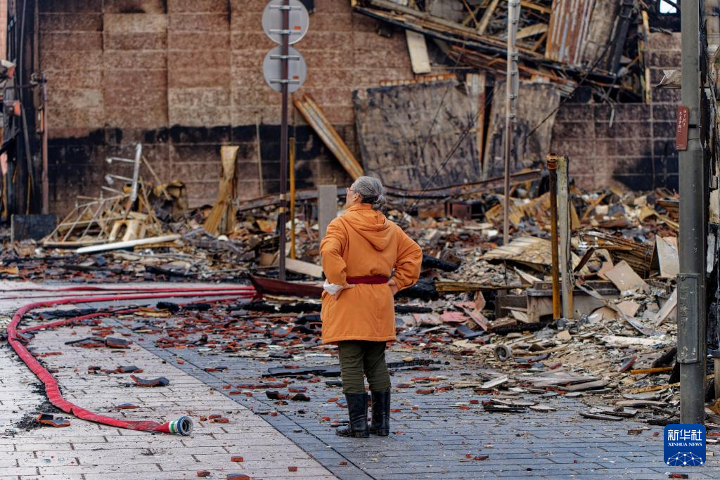 1月4日,日本石川县轮岛市“轮岛早市”被大火烧成废墟。