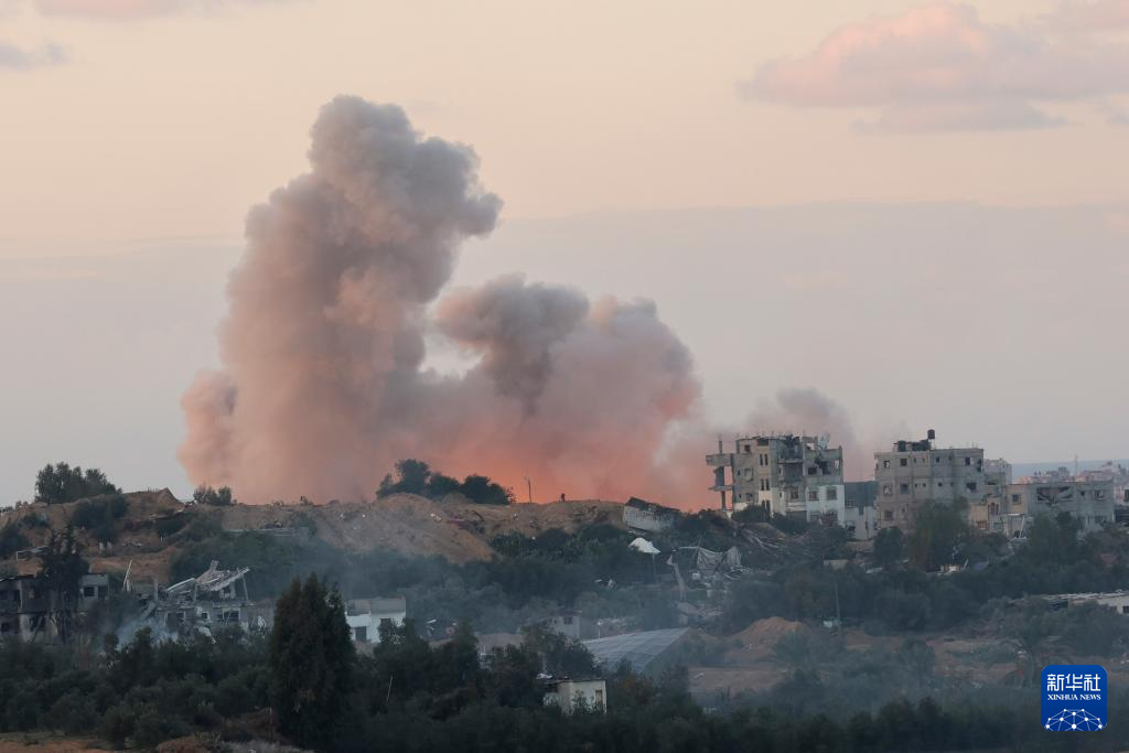这是1月4日从加沙边境以色列一侧拍摄的加沙北部遭袭情况。