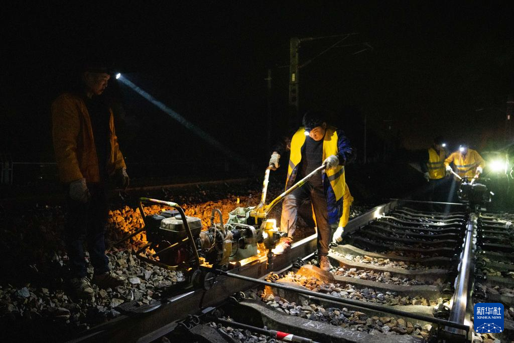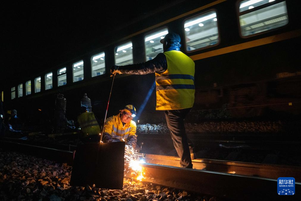 1月5日凌晨,铁路工人在沪昆铁路公坪至芷江西区间进行换轨施工。