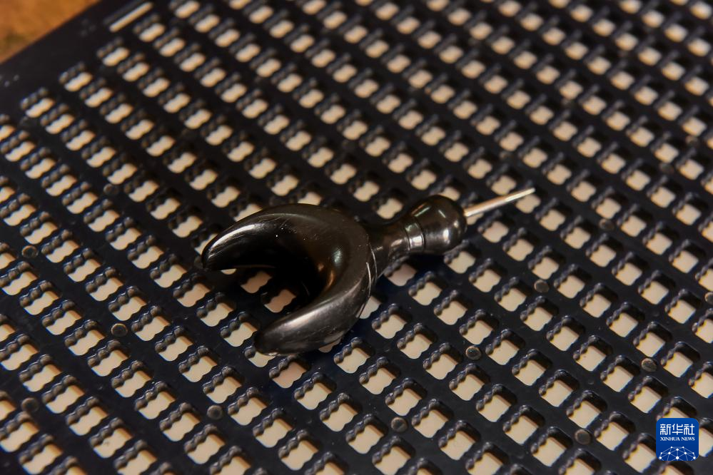这是1月4日在喀麦隆雅温得一所全纳学校里拍摄的书写盲文的工具。