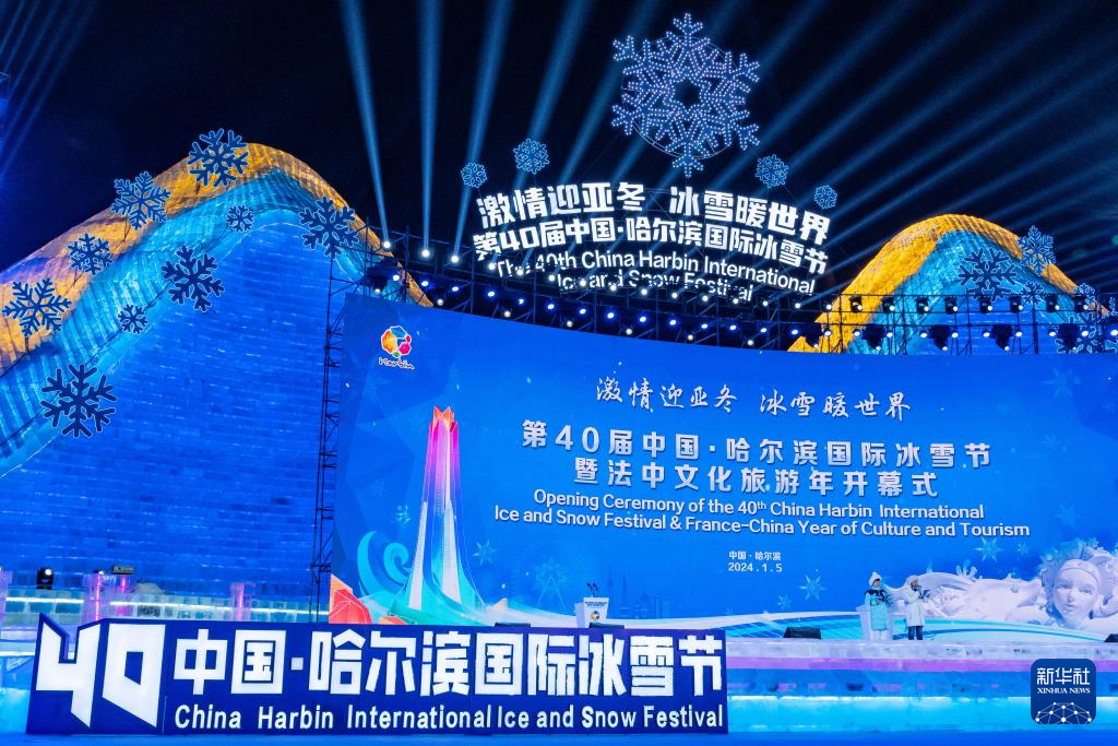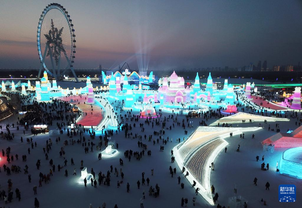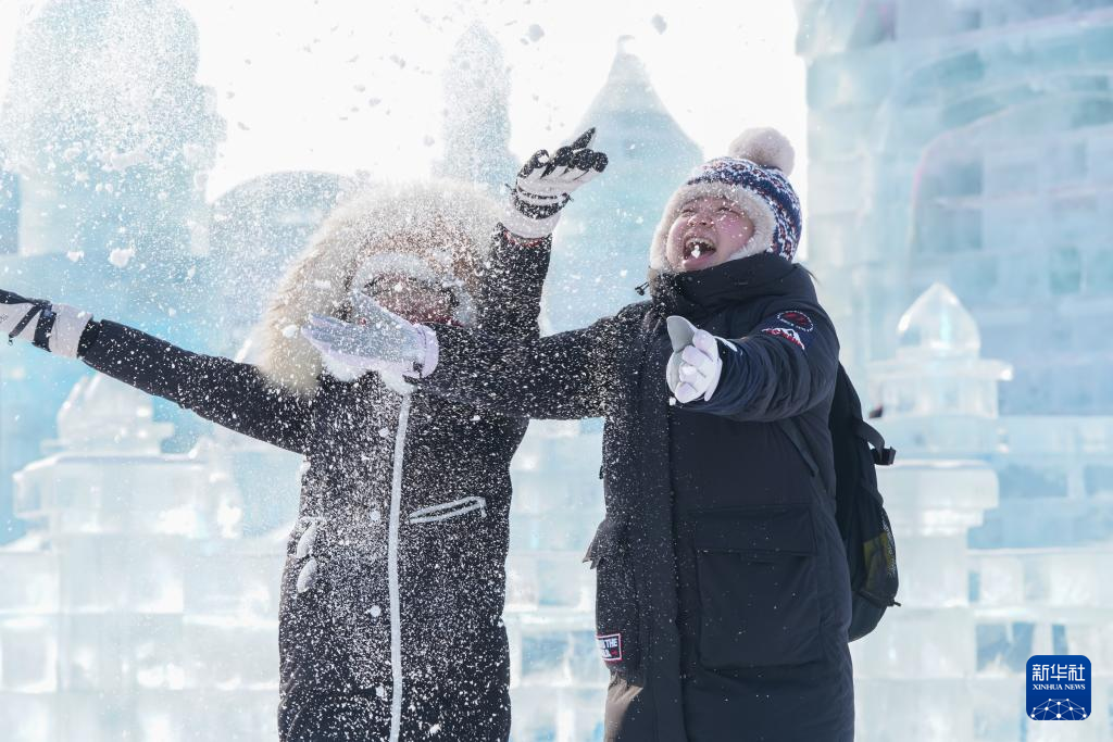 当日,第40届中国·哈尔滨国际冰雪节开幕,吸引众多游客。