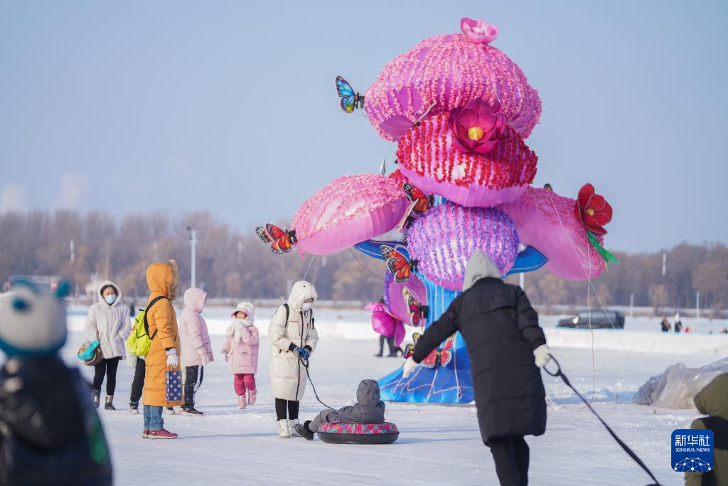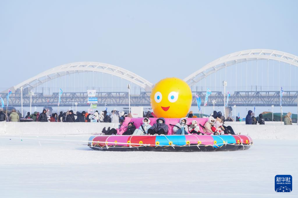 1月5日,游客在松花江冰雪嘉年华游玩。