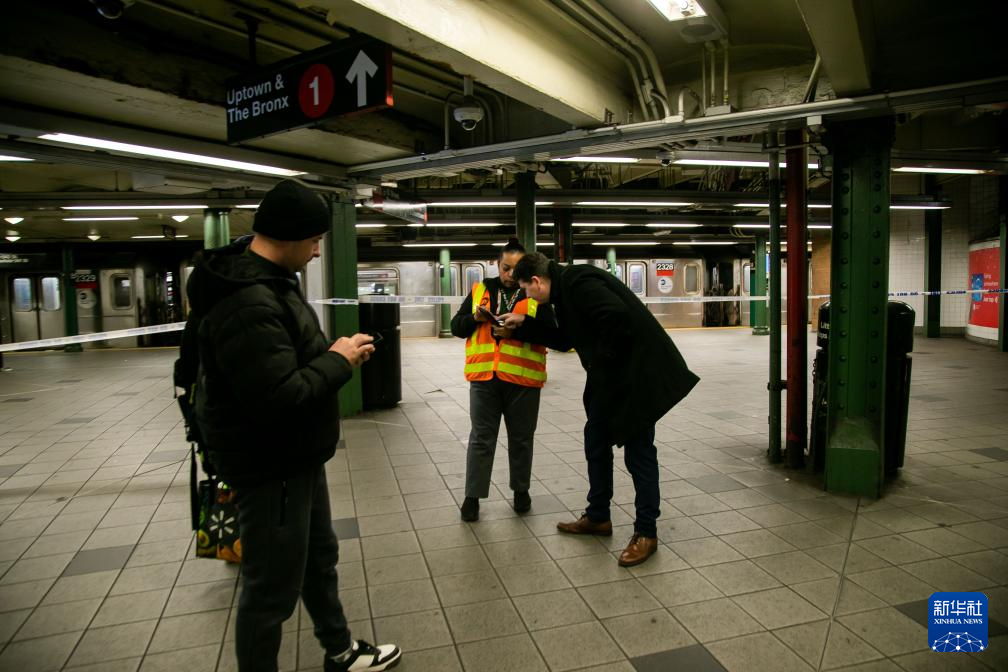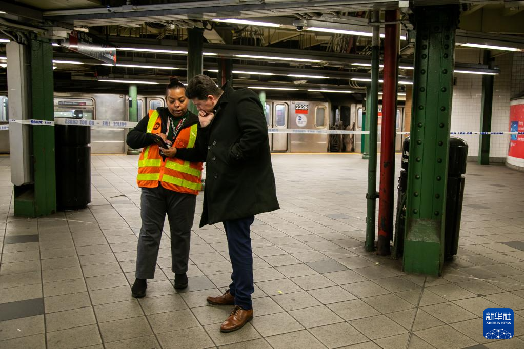 1月4日,在美国纽约,工作人员在地铁站台为乘客提供帮助。