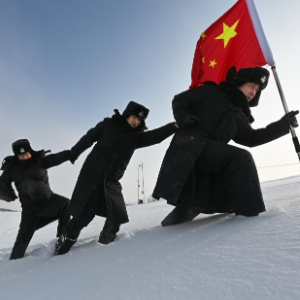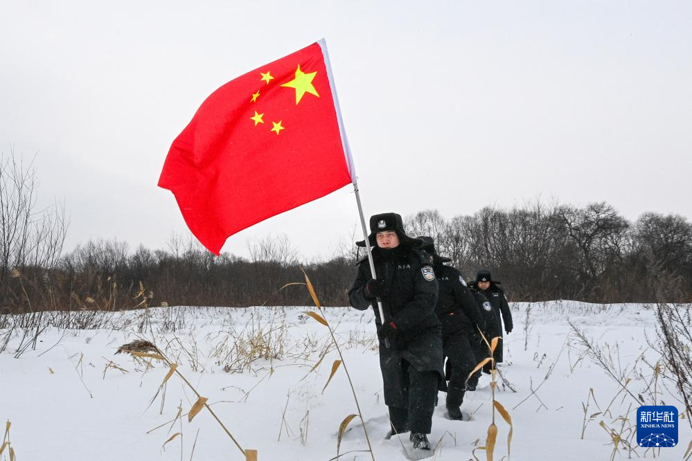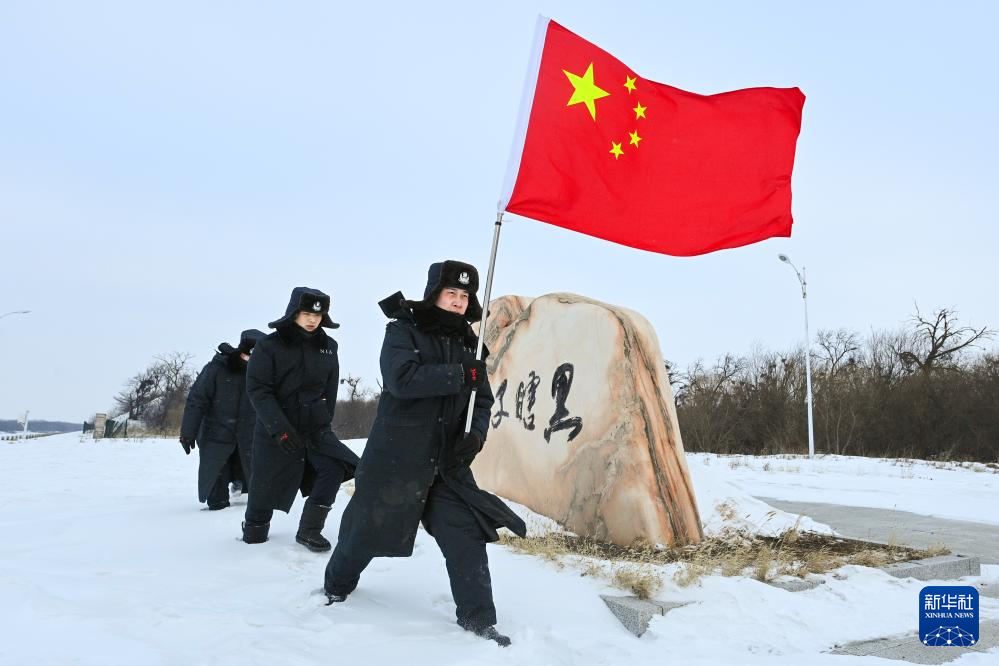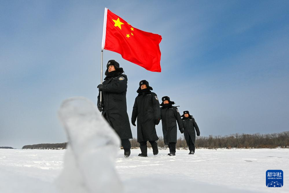 旭日初升,“嘎吱嘎吱”的踏雪声打破了沉寂,一面鲜艳的五星红旗迎着霞光出现在了江面上——在“中国东极”黑龙江省抚远市,黑瞎子岛边境管理大队黑瞎子岛边境派出所的移民管理警察又开始巡逻了。