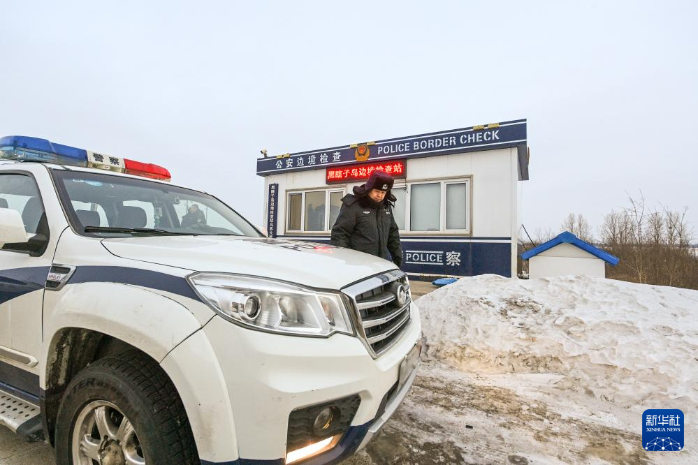 1月5日,黑瞎子岛边境派出所教导员徐旭在出发执勤前检查车辆。