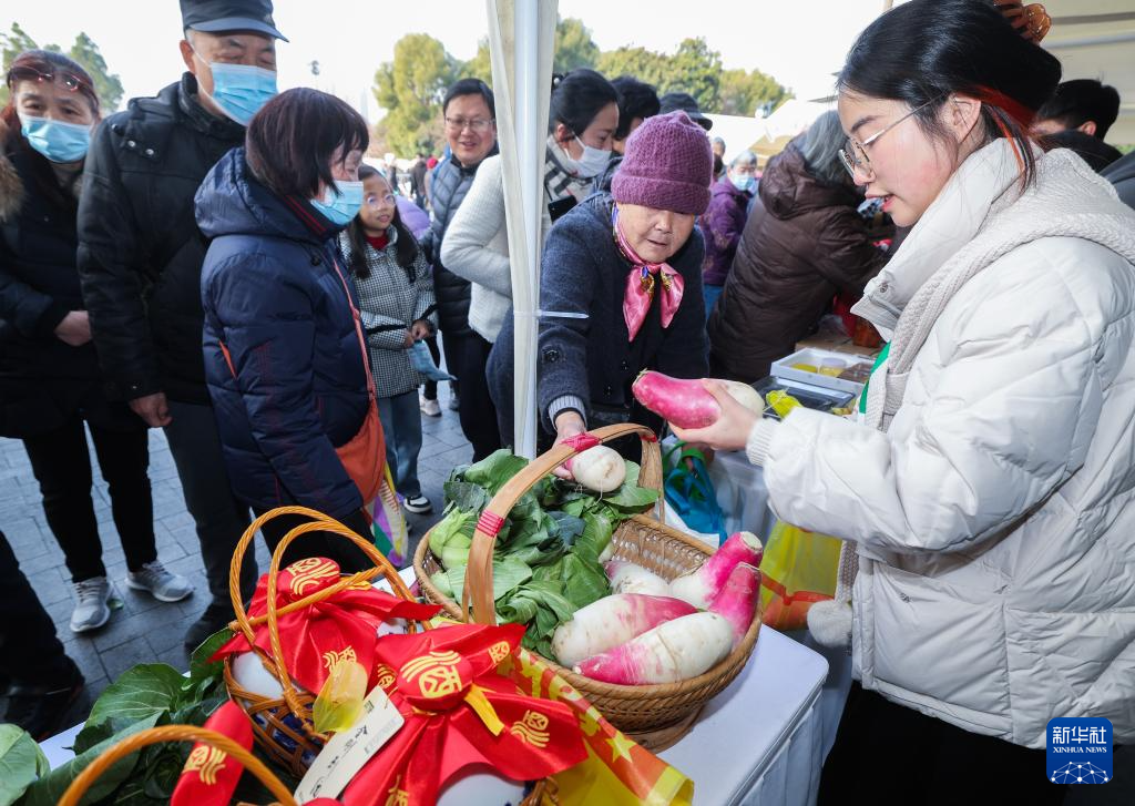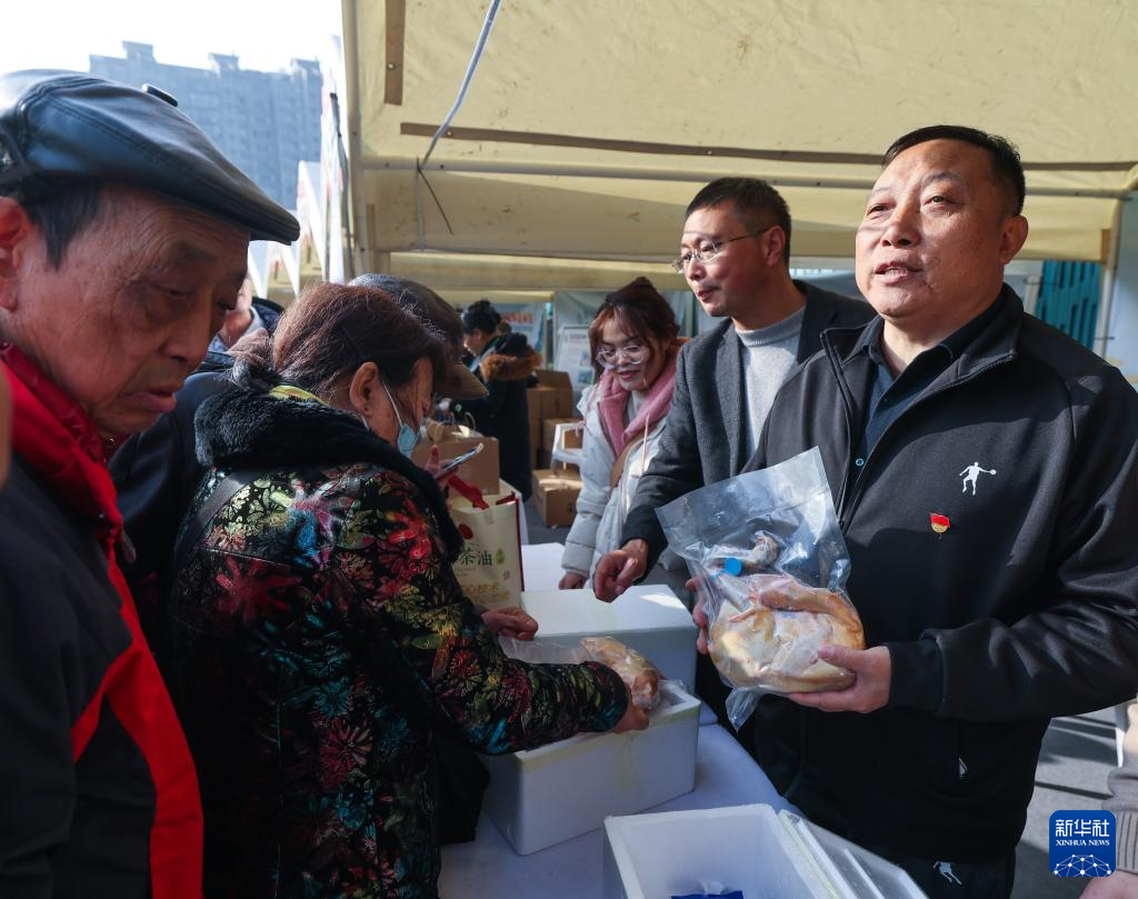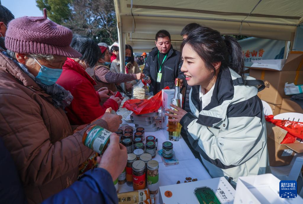 1月6日,杭州市民在千岛湖农产品推介现场的展位前选购特色农产品。
