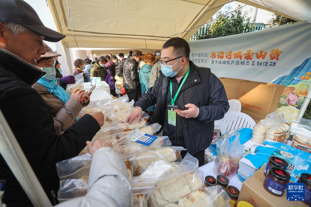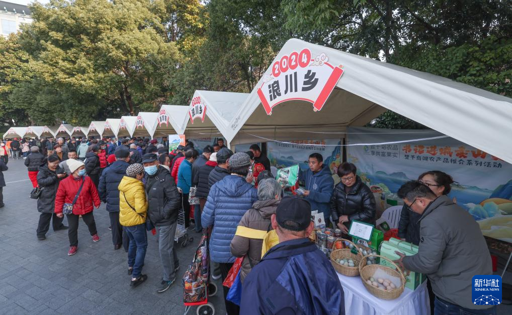 当日,在杭州市运河广场,浙江省杭州市淳安县23个乡镇的基层书记们带着100多种淳安千岛湖优质农产品,参加淳安“书记进城卖山货”暨千岛湖农产品推介系列活动,吸引市民纷纷驻足品尝挑选。