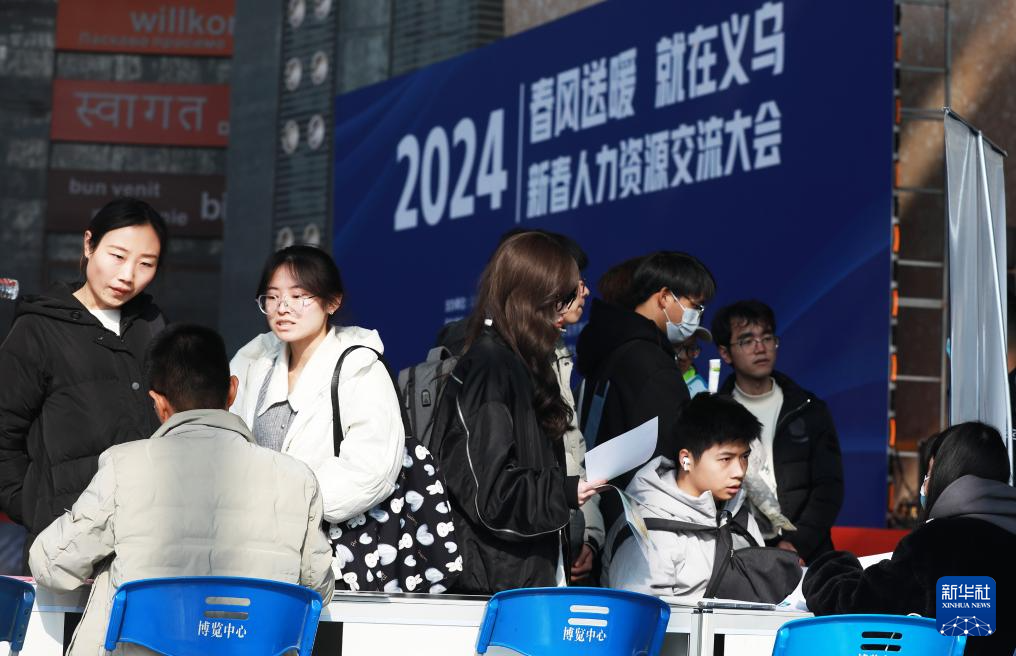 当日,浙江省义乌市举行2024新春人力资源交流大会,200余家企业提供5000余个工作岗位进场招聘,岗位涉及商贸类、物流类等领域。为方便求职者和企业之间的交流,招聘会现场设有校企对接专区、劳务协作基地对接区、直播带岗专区、人力资源机构服务区等特色区域,为参会人员提供一站式就业服务体验。