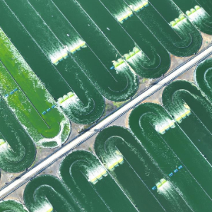 这是1月7日在广西防城港市港口区企沙镇山新村拍摄的养殖基地微藻养殖池(无人机照片)。