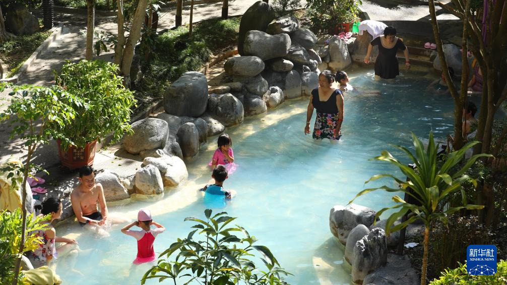 1月7日,游客在云南省水富市西部大峡谷泡温泉。