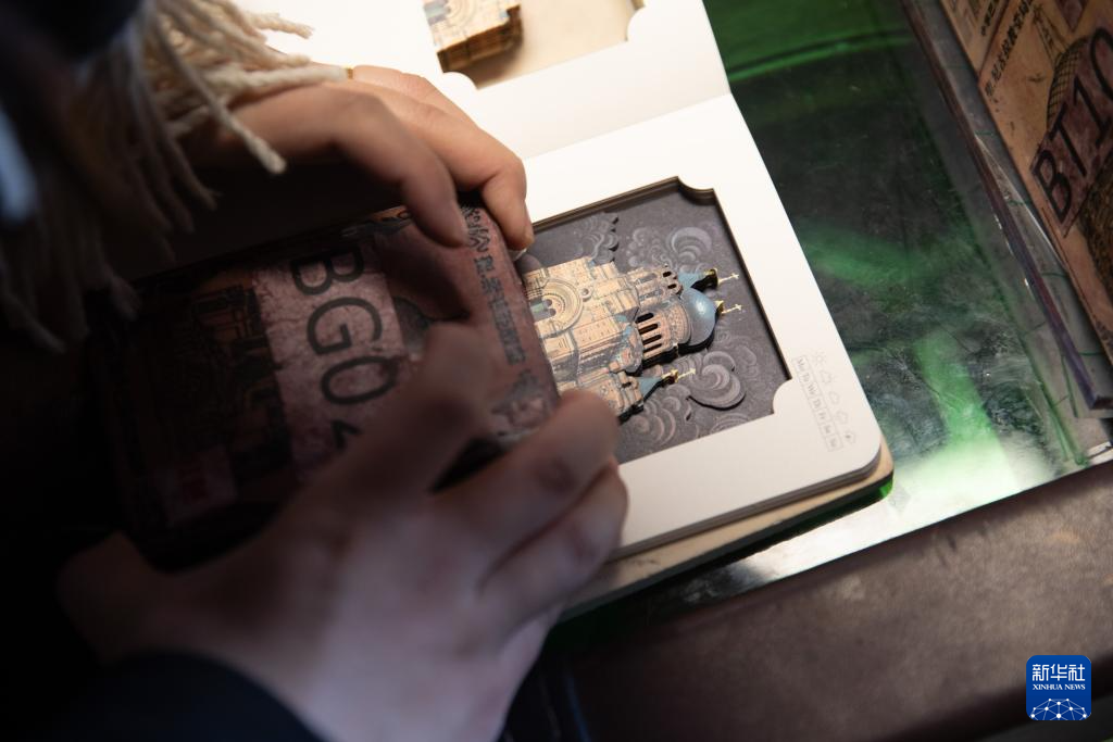 1月8日,游客在哈尔滨市道外区中华巴洛克历史文化街区内打卡盖章。