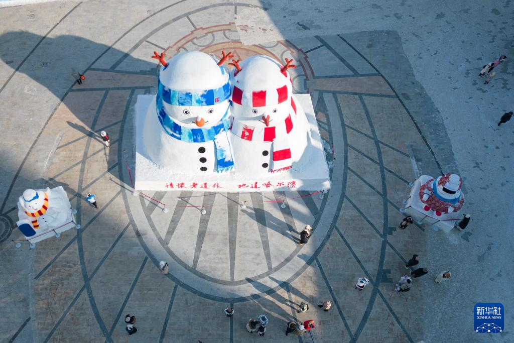 1月8日,游客在哈尔滨市道外区中华巴洛克历史文化街区内游玩(无人机照片)。