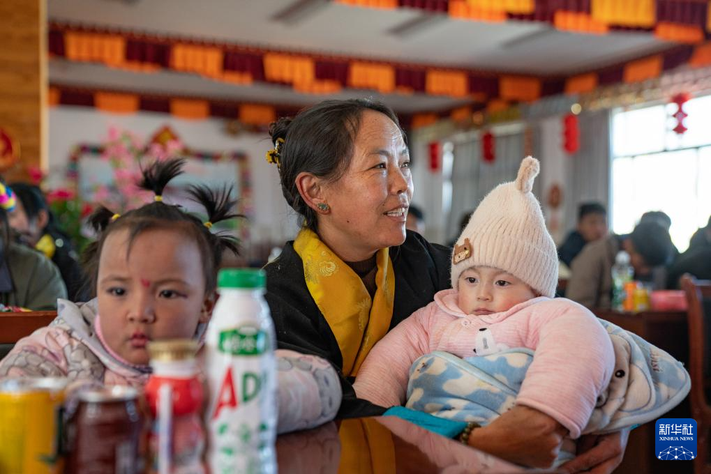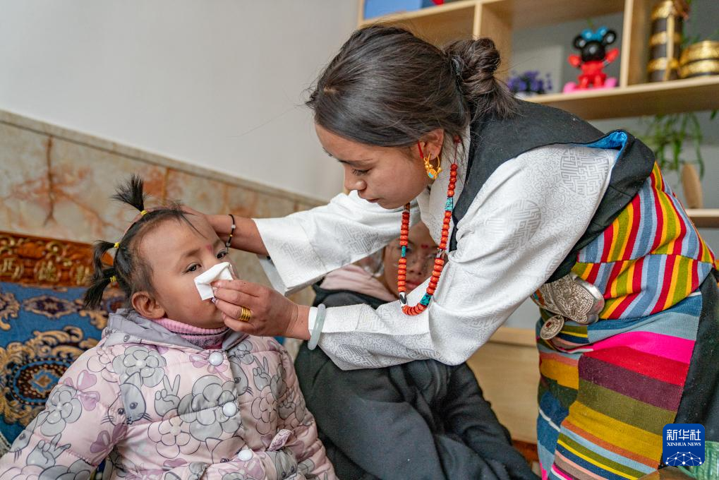 1月8日,爱心妈妈旦增卓玛在照顾孩子。