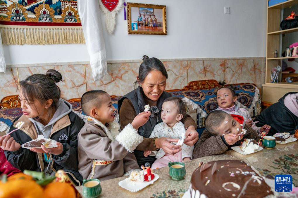 1月8日,爱心妈妈巴桑和孩子们一起吃蛋糕。
