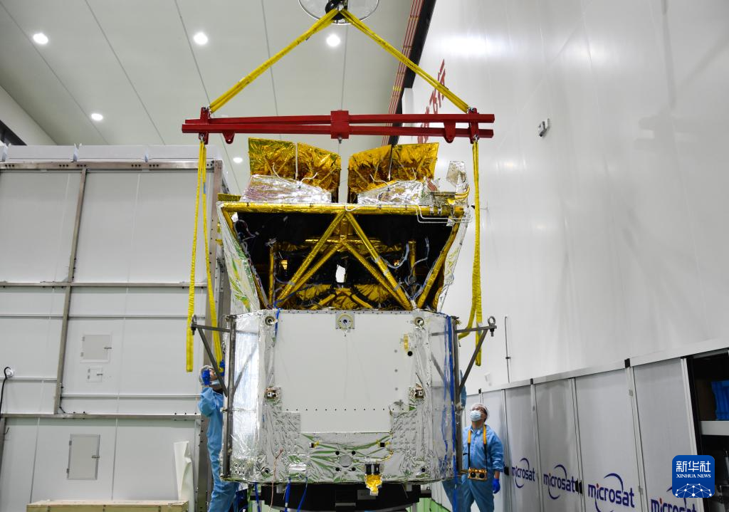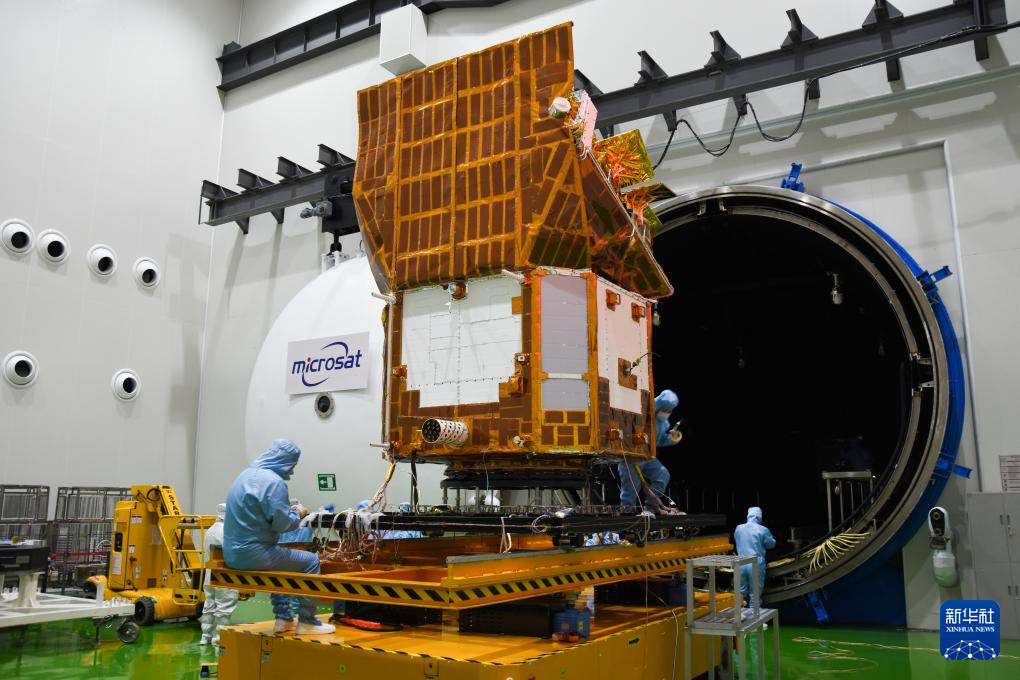 2023年9月11日,在中国科学院微小卫星创新研究院,爱因斯坦探针卫星正在进行力学试验。