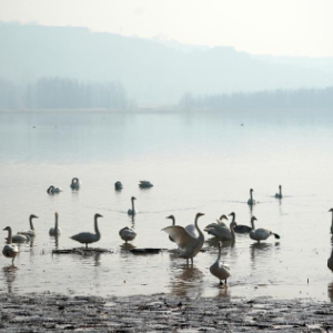 占地6000多公顷的山西平陆黄河湿地位于山西、河南两省交界处,这里气候温和、采食丰富,非常适宜白天鹅越冬。每年秋末冬初,白天鹅就会成群结队地从俄罗斯西伯利亚地区陆续飞临这里越冬。