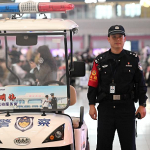 1月8日,高明伟在南宁东站用对讲机向同事报告旅客遗失证件有关信息。