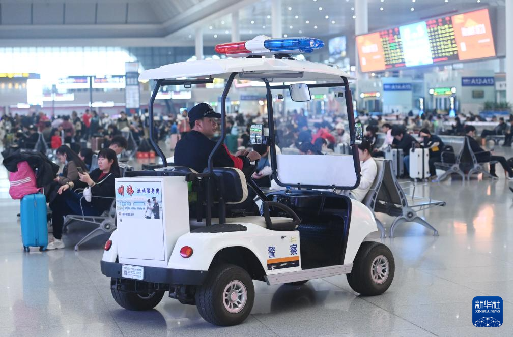 1月8日,高明伟在南宁东站提醒旅客充电时要注意手机不要离开自己的视线。