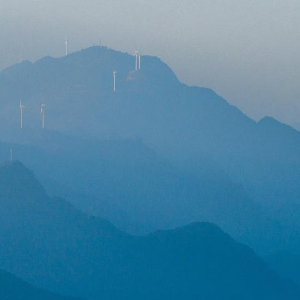 这是1月10日在千野草场景区拍摄的风力发电机组(无人机全景照片)。