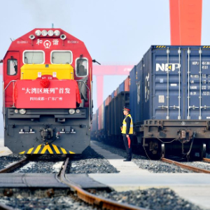 当日,四川成都开往广东广州的“大湾区班列”在位于成都市青白江区的城厢站首发。该班列的成功开行,将加快四川与粤港澳地区贸易交流效率,助力四川经济高质量发展。