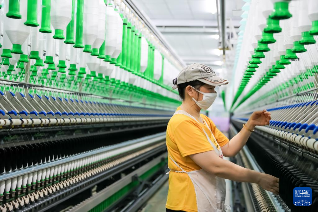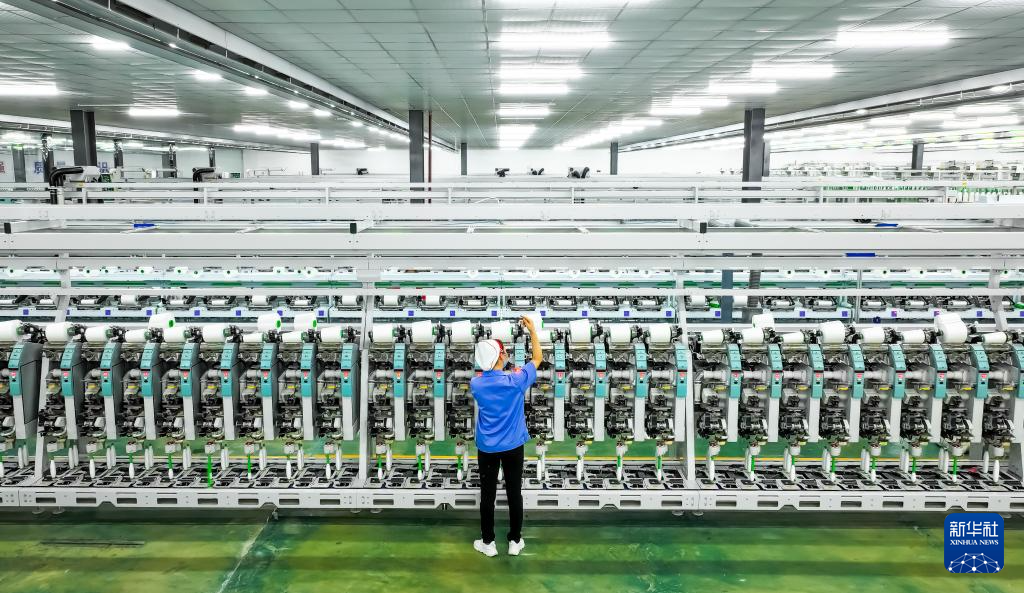 1月11日,江西省瑞昌市华瑞(中国)缝纫线有限公司,工人在智能生产线上忙碌。