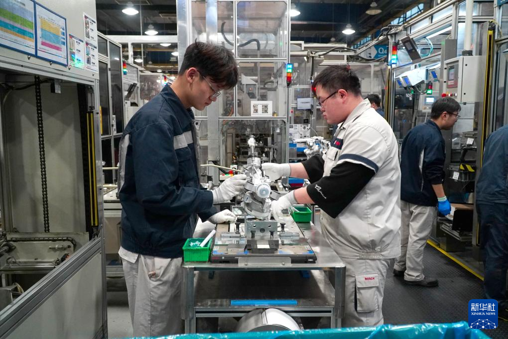 1月10日,工作人员在位于山东省烟台市福山区的博世华域转向系统(烟台)有限公司生产车间生产操作。