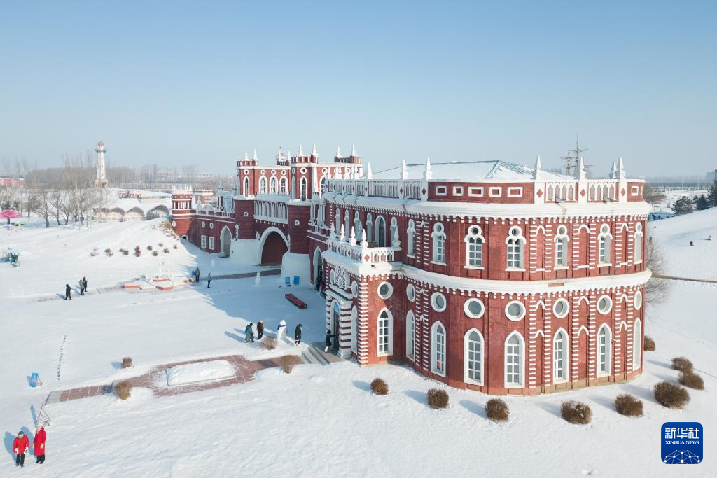 这是1月7日拍摄的哈尔滨极地公园(无人机照片)。