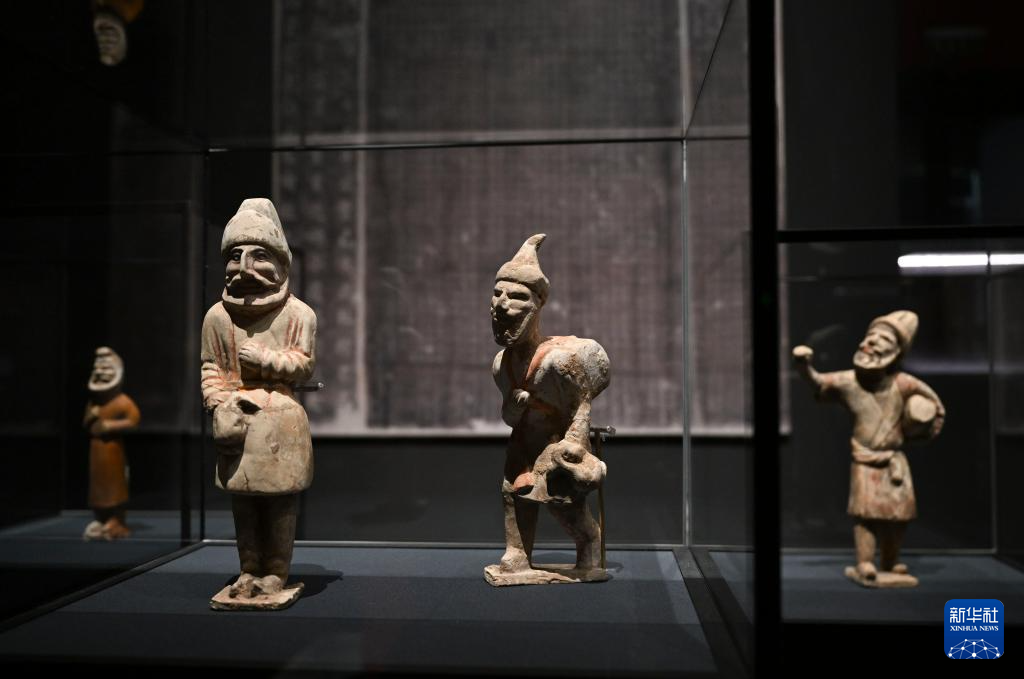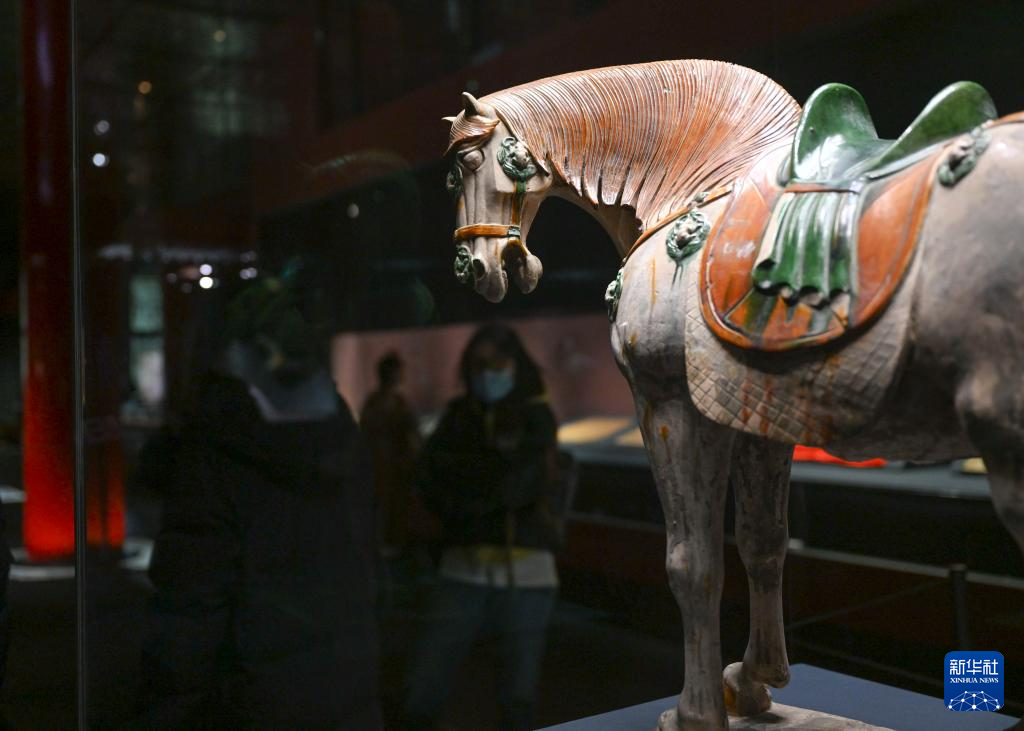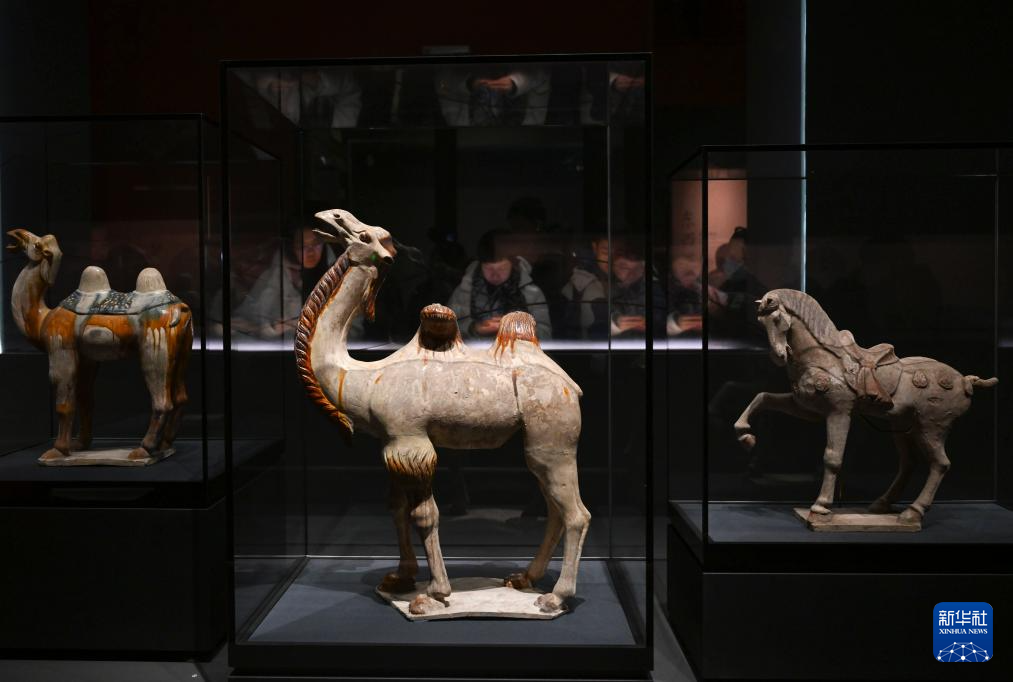 这是展出的陶彩绘马与三彩骆驼(1月10日摄)。