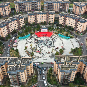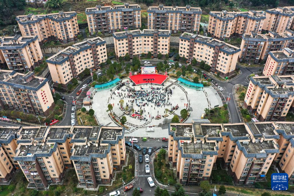 这是1月11日拍摄的贵州省龙里县冠山街道奋进社区2023年集体经济收益分红大会现场(无人机照片)。