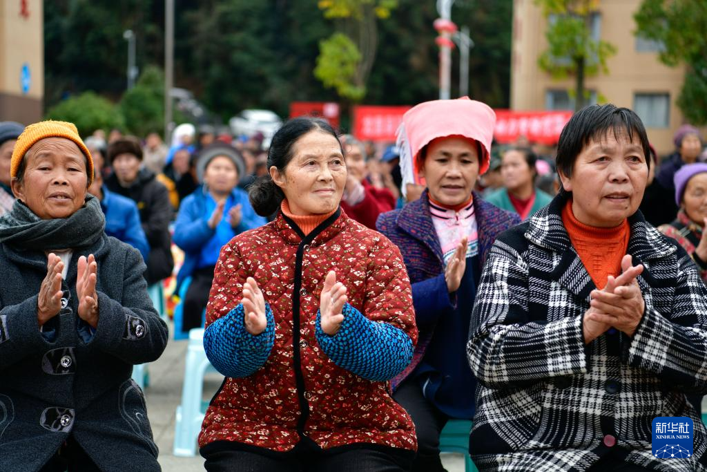 1月11日,易地扶贫搬迁群众参加贵州省龙里县冠山街道奋进社区2023年集体经济收益分红大会。