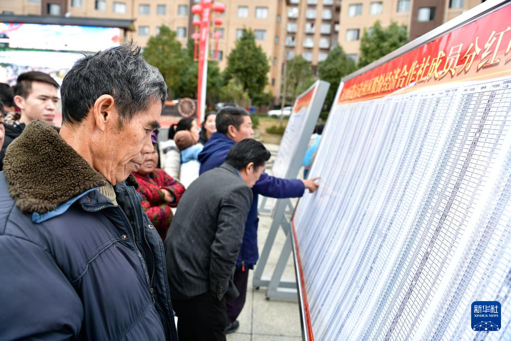 1月11日,贵州省龙里县冠山街道奋进社区易地扶贫搬迁群众在查看分红详细表。