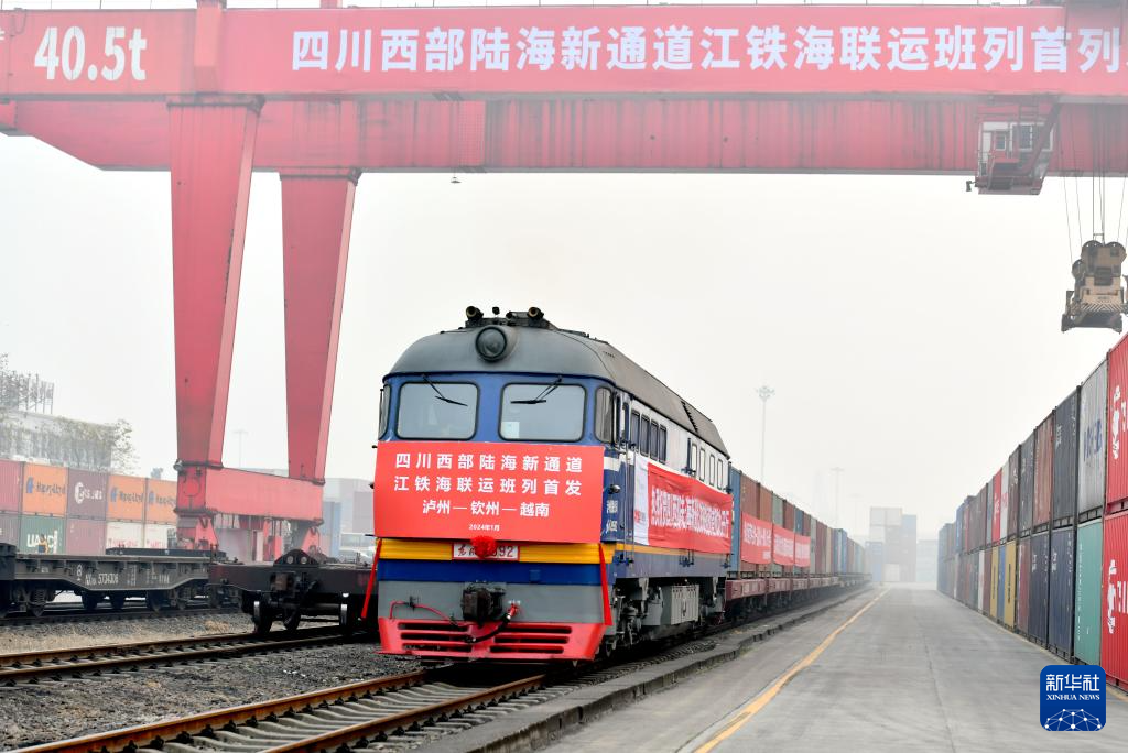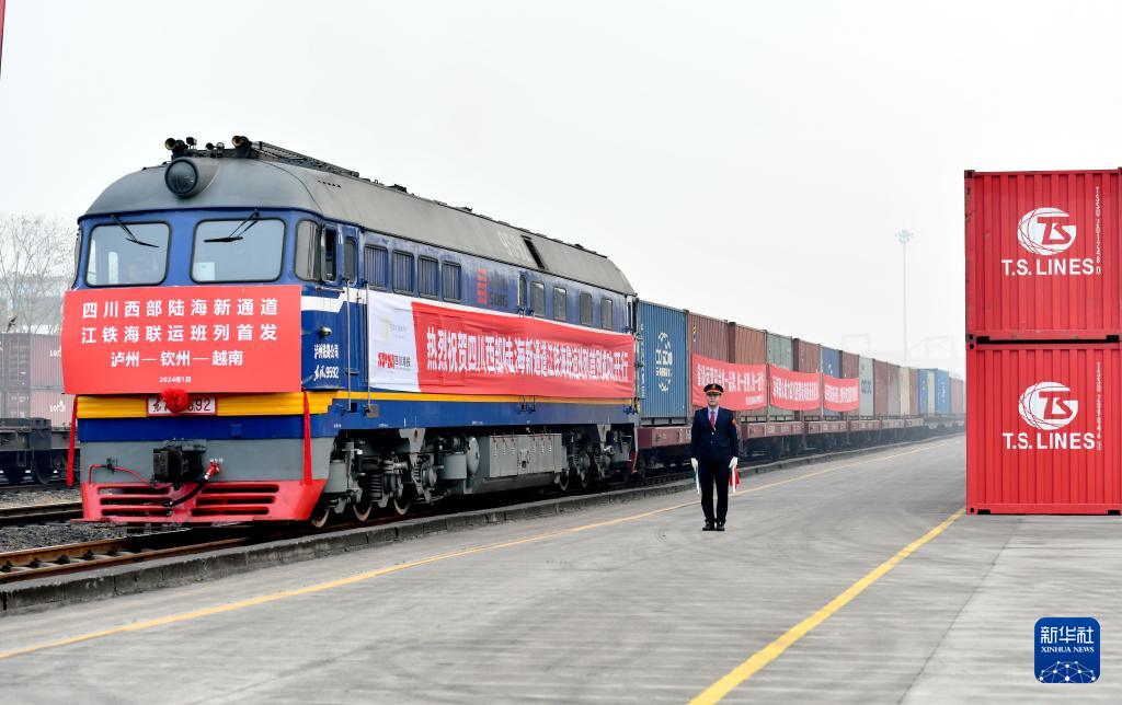 当日,首列四川西部陆海新通道江铁海联运班列正式发车。满载着25组集装箱货物的班列从四川省泸州港站驶出,经四川、贵州、广西等地,在广西钦州港下水最终运抵越南等国家。