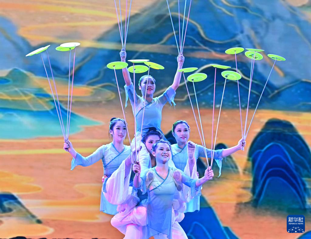 该校杂技专业学生在表演杂技《蝶舞风华——转碟》(1月11日摄)。