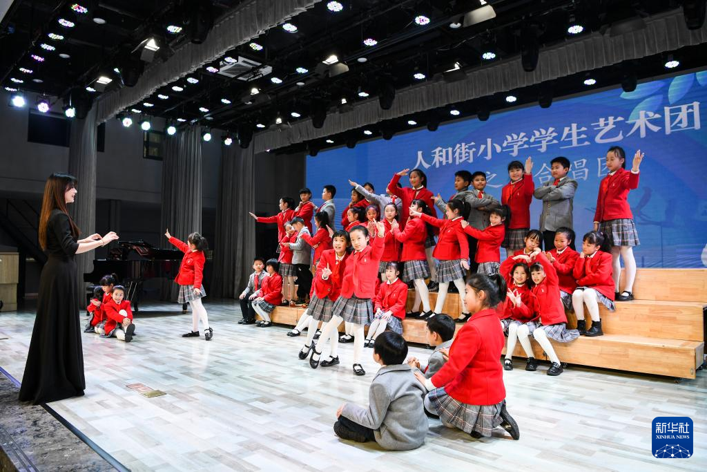1月11日,重庆市渝中区人和街小学合唱社团学生在排练节目。