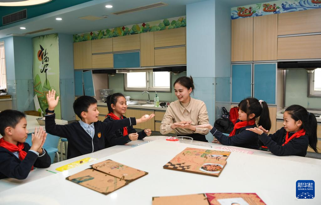 1月11日,重庆市人民小学食育社团学生在老师指导下练习包汤圆。