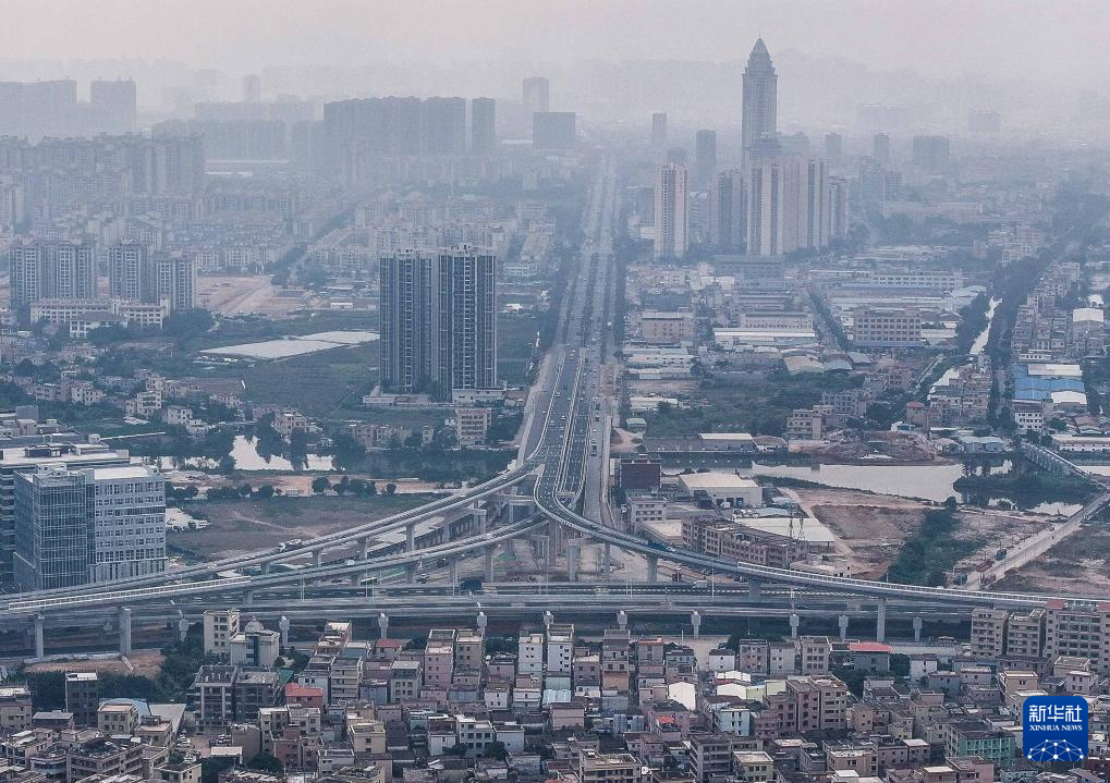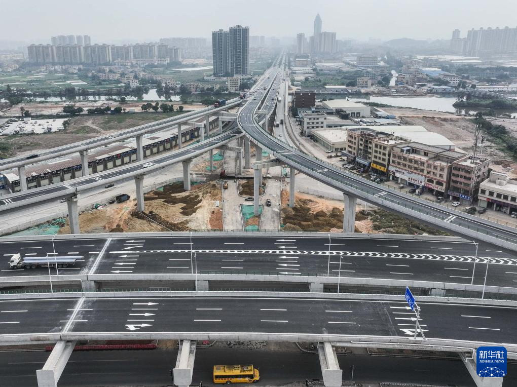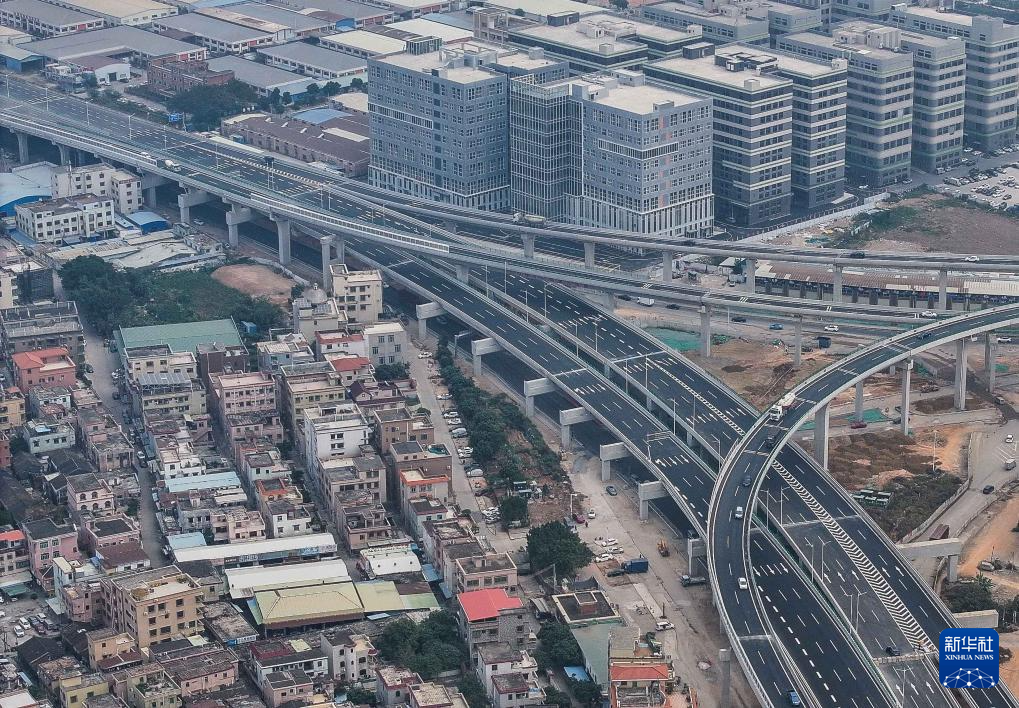 位于中山市坦洲镇的坦神北路龙塘互通(无人机照片,1月12日摄)。