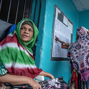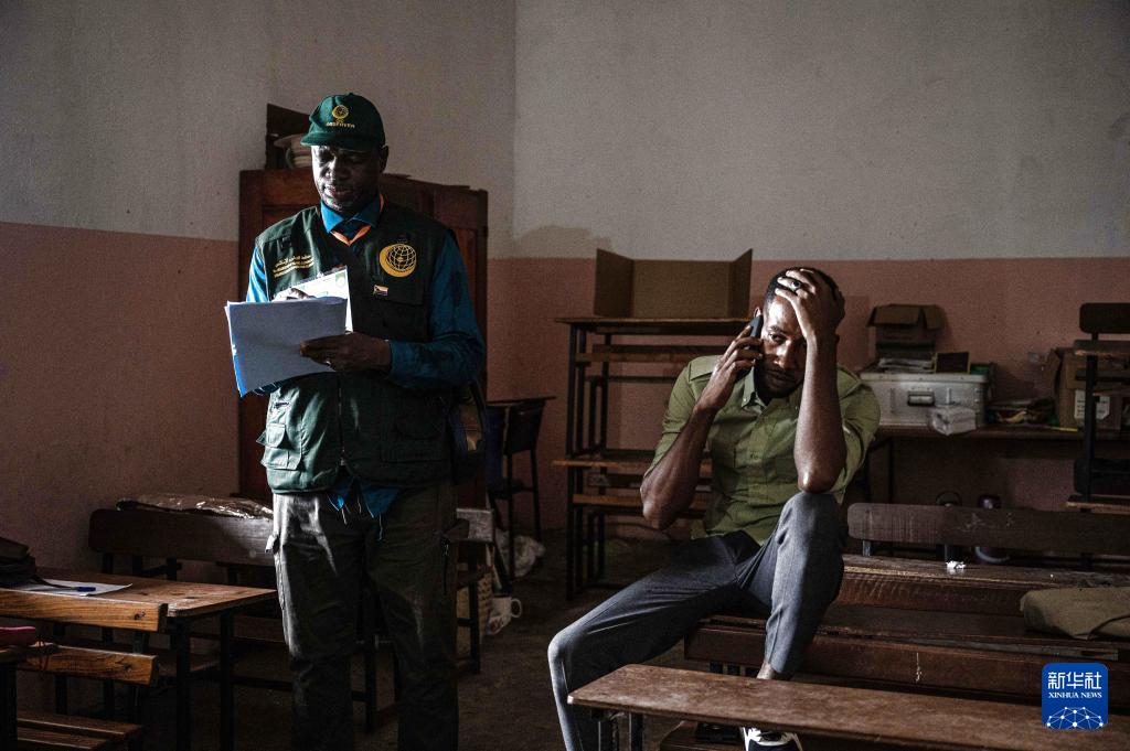 1月14日,选举观察员(左)在位于科摩罗米楚杰的一处投票站内记录投票情况。